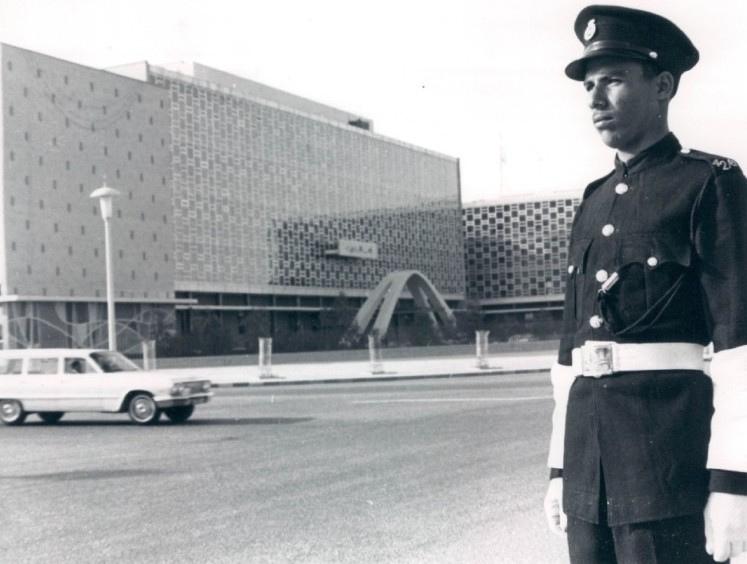 His Highness the Amir Sheikh Sabah Al Ahmed Al Jaber Al Sabah when he was Minister for Guidance and Construction, a tour at the radio and television building in the seventies.